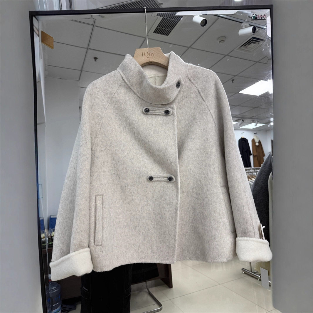 双面羊绒大衣女短款小西装黑色高端羊毛双面呢工装小个子毛呢外套
