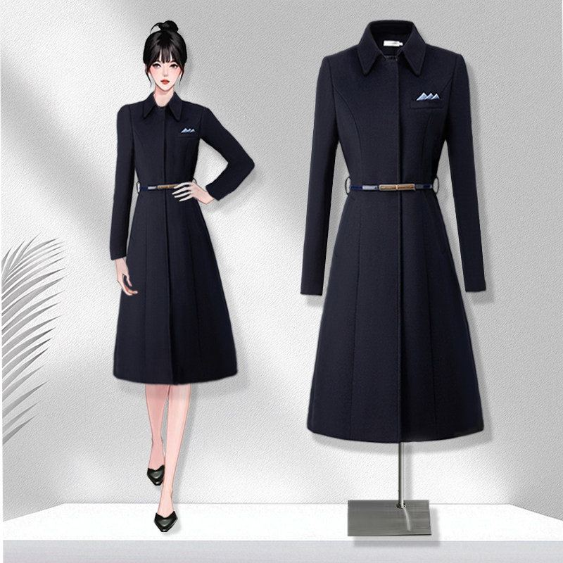 职业毛呢大衣女冬长款工装呢子外套售楼部银行酒店前台空姐工作服