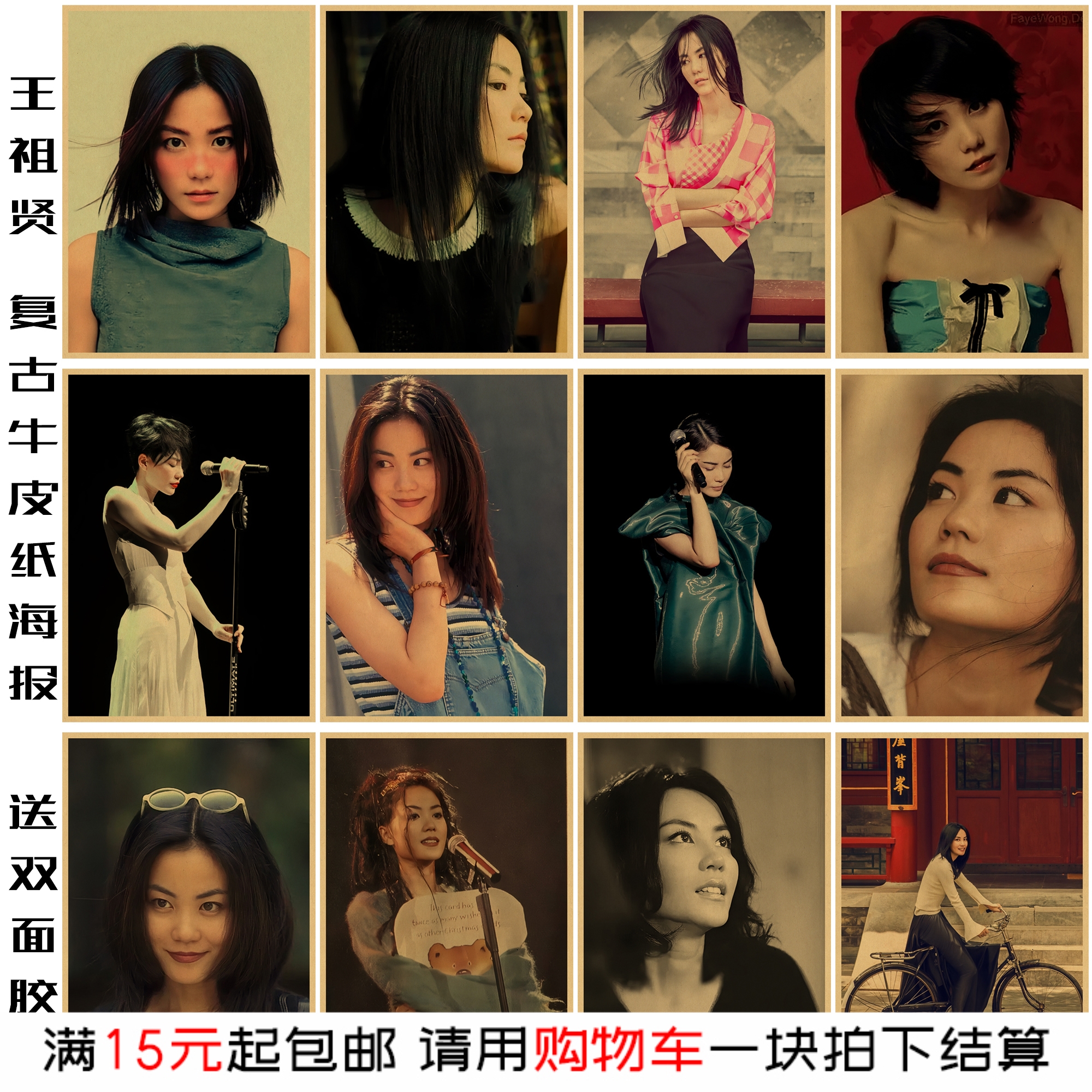 王菲复古牛皮纸海报定做香港台女星美女明星天后装饰画房间墙贴画