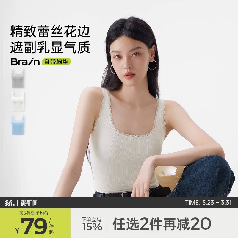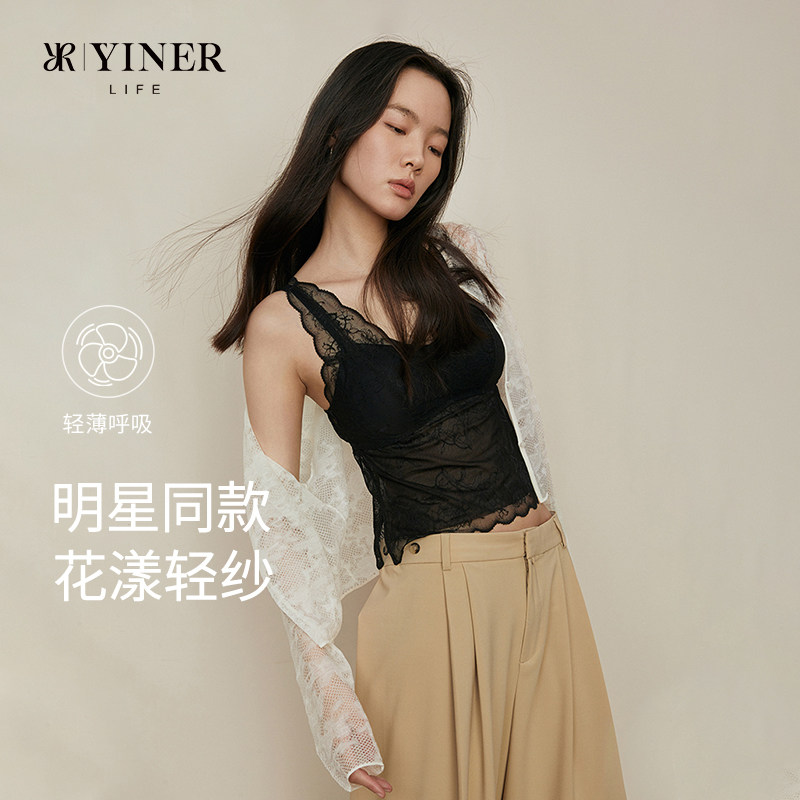 馨帮帮Bra 纯欲蕾丝边吊带背心女夏季内穿外搭带胸垫美背打底上衣
