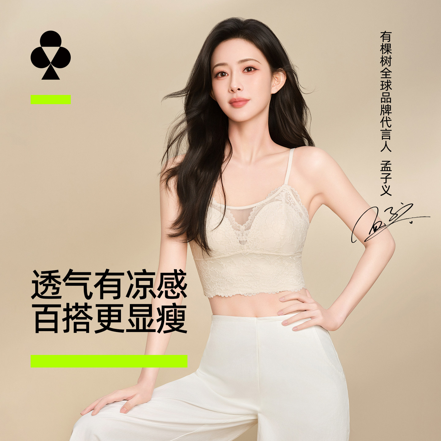 【孟子义同款】有棵树蕾丝吊带背心女美背文胸一体背心外穿带胸垫