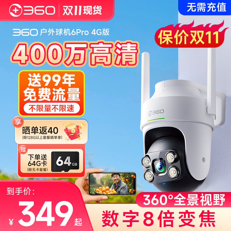 360旗舰店户外摄像头防水室外家用智能WiFi监控无线网络4G摄影头