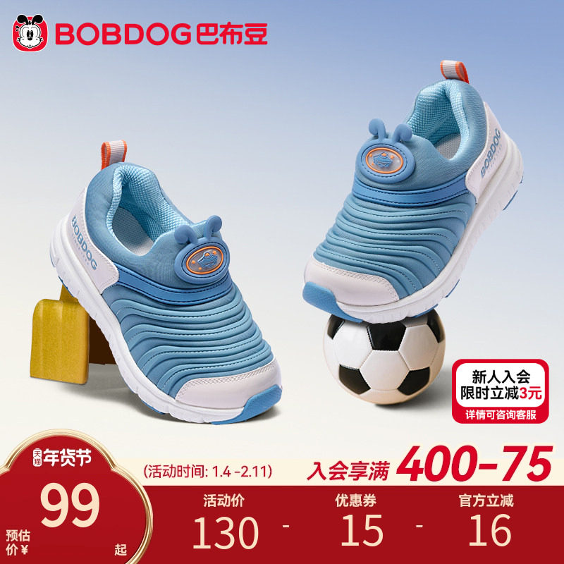 巴布豆男童鞋2025新款毛毛虫童鞋女童春秋儿童秋冬加绒男童运动鞋