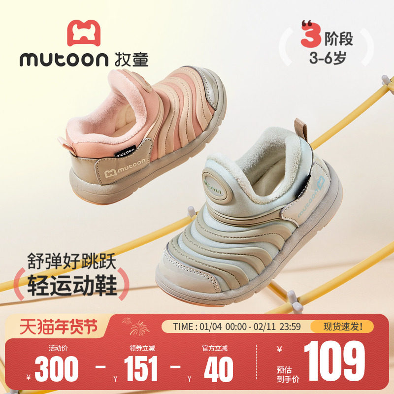 牧童毛毛虫鞋儿童运动鞋2025冬季新款男童软底加绒保暖女童二棉鞋
