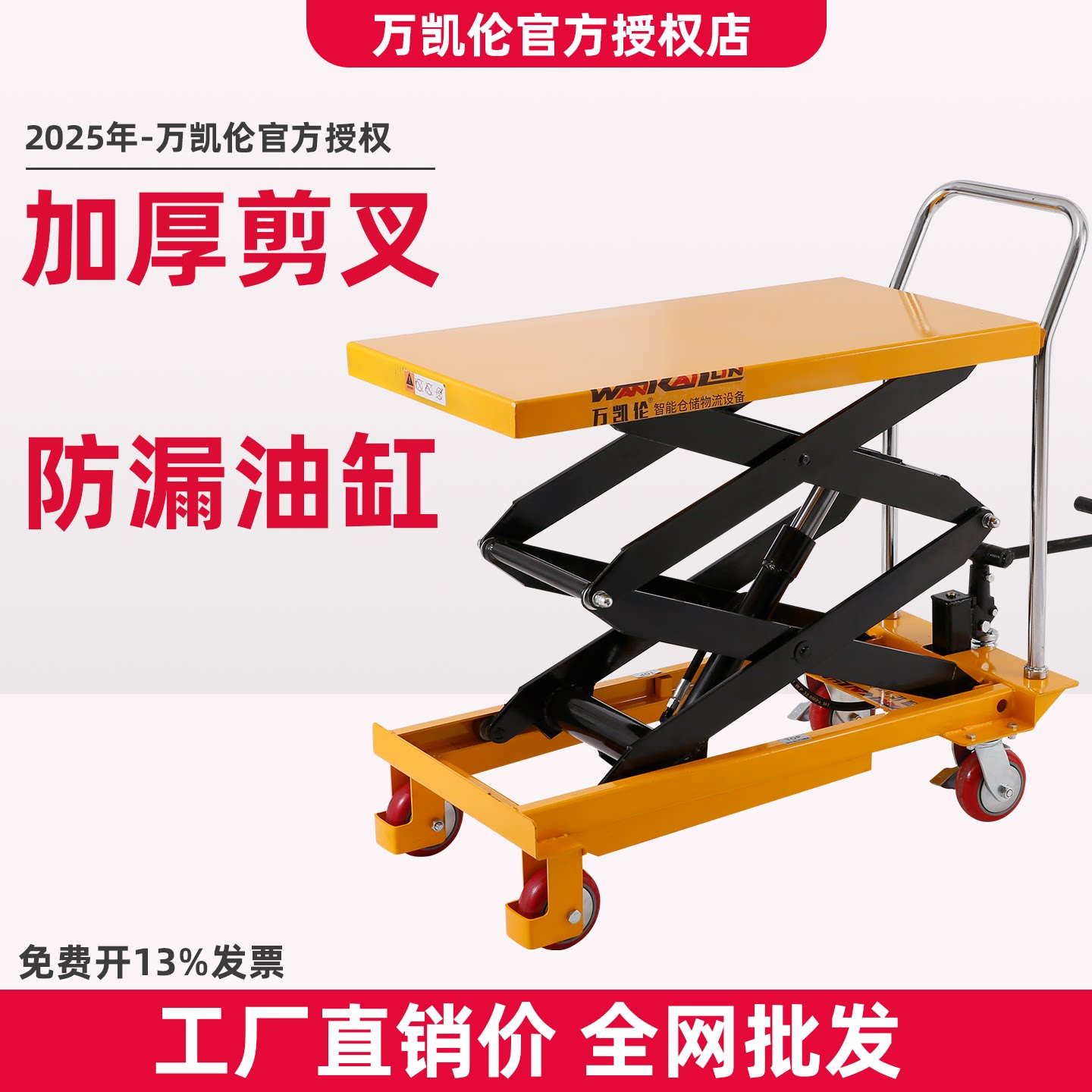 万凯伦手动液压平台车移动升降机固定式电动平板车脚踩小型升降车