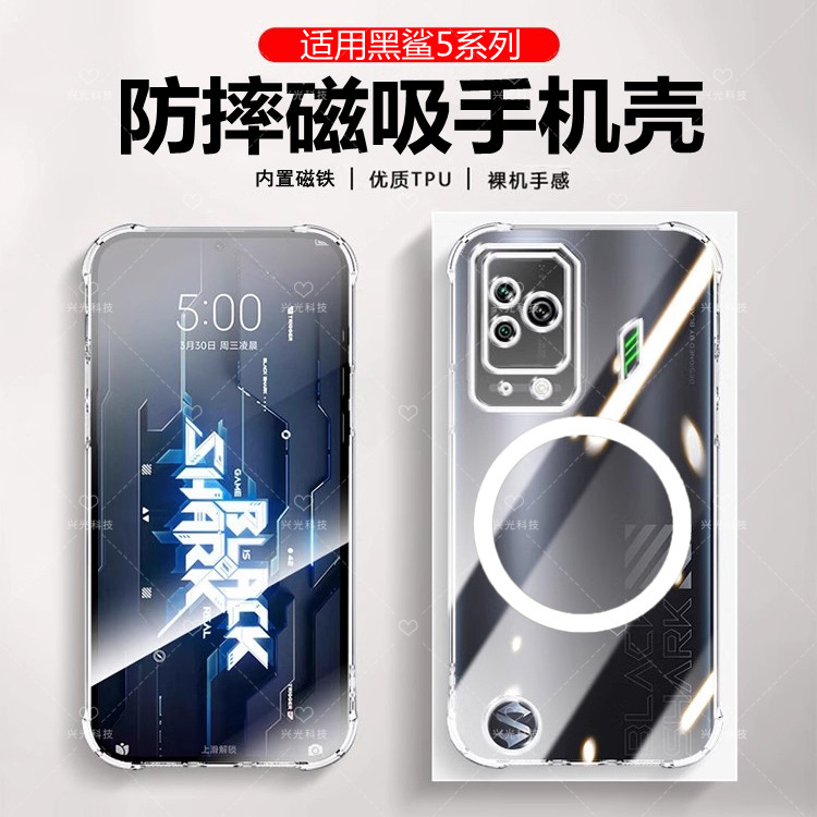 适用小米黑鲨5pro磁吸壳4s透明纯色4spro防指纹肤感磨砂全包液态保护套硅胶软直边外超薄高端后盖内置设5