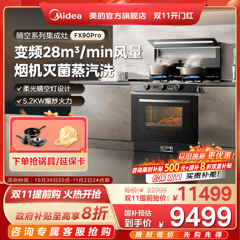 国家补贴]美的晴空FX90PRO集成灶一体家用28风量蒸烤箱子官方旗舰