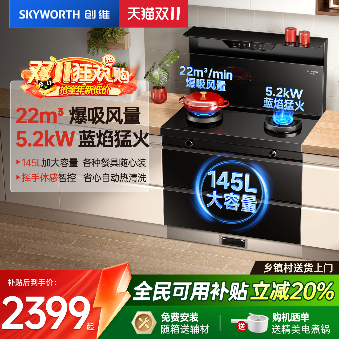 创维集成灶家用一体式厨灶台油烟机燃气灶消毒柜一体以旧换新补贴