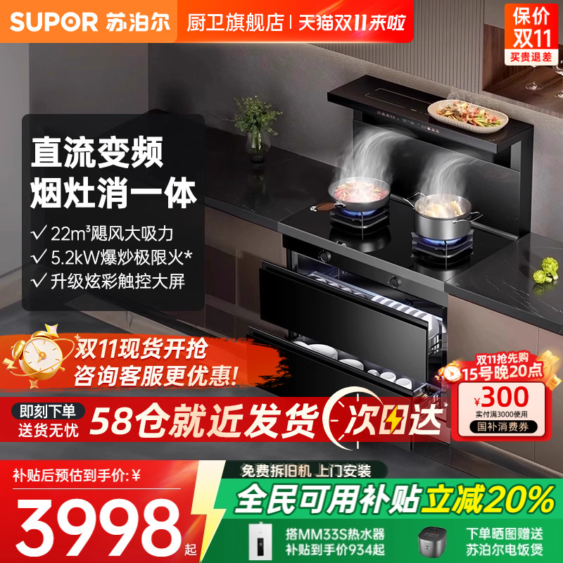 苏泊尔UX10S集成灶多功能家用集成一体灶油烟机燃气灶二星消毒柜