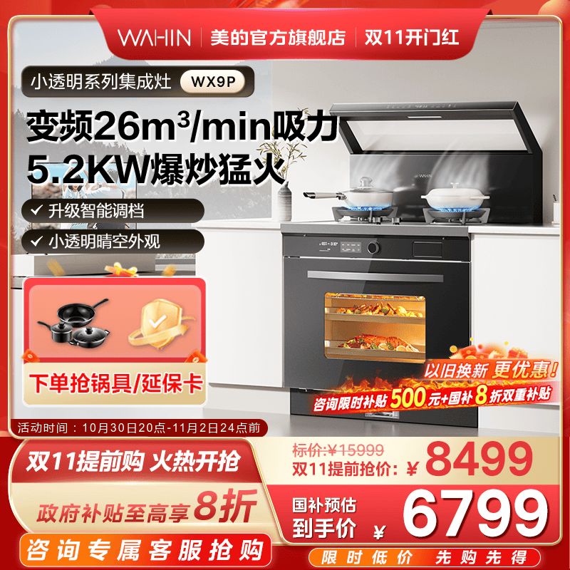 [国家补贴]美的出品华凌小透明集成灶家用蒸烤一体WX9P官方旗舰店