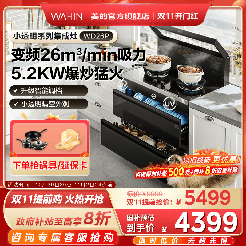 国家补贴]美的出品华凌小透明集成灶家用消储一体WD26P官方旗舰店