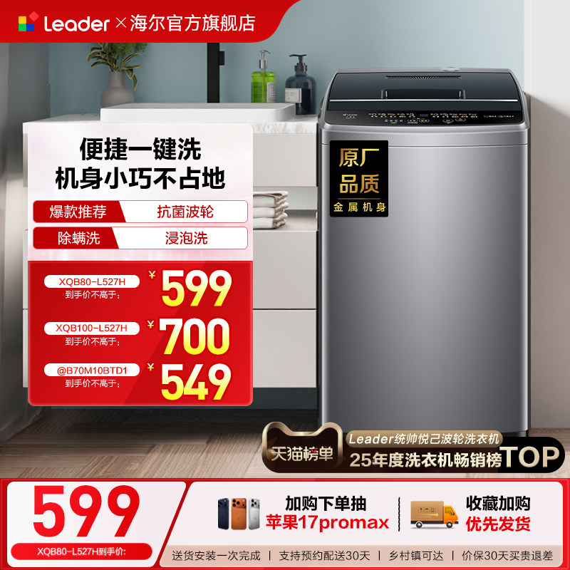 换新补贴海尔出品统帅8/10kg大容量家用全自动抗菌波轮洗衣机527