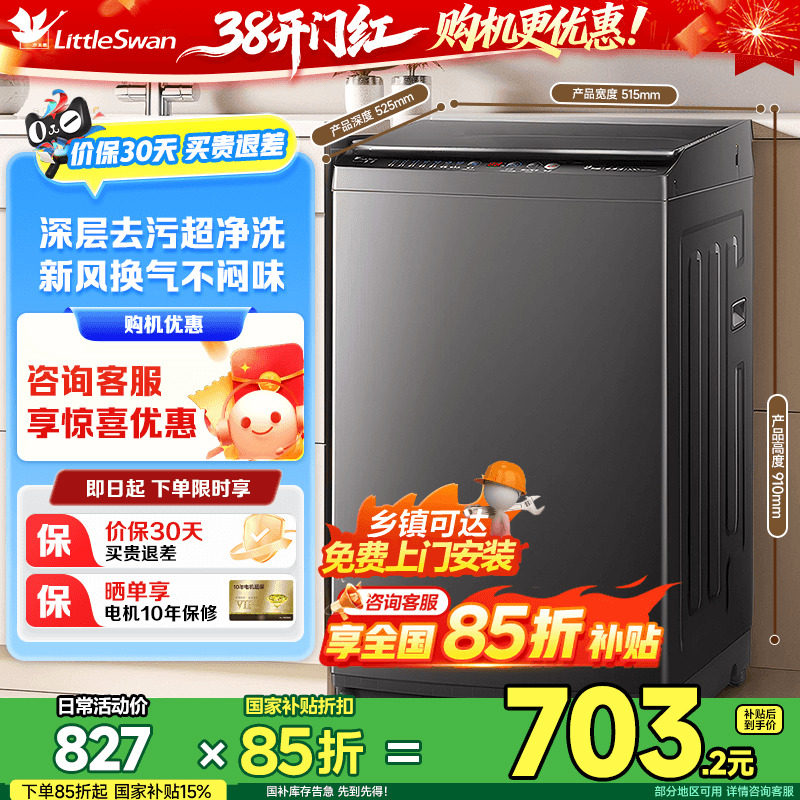 以旧换新小天鹅8/10/12kg家用小型波轮洗衣机全自动洗脱一体机