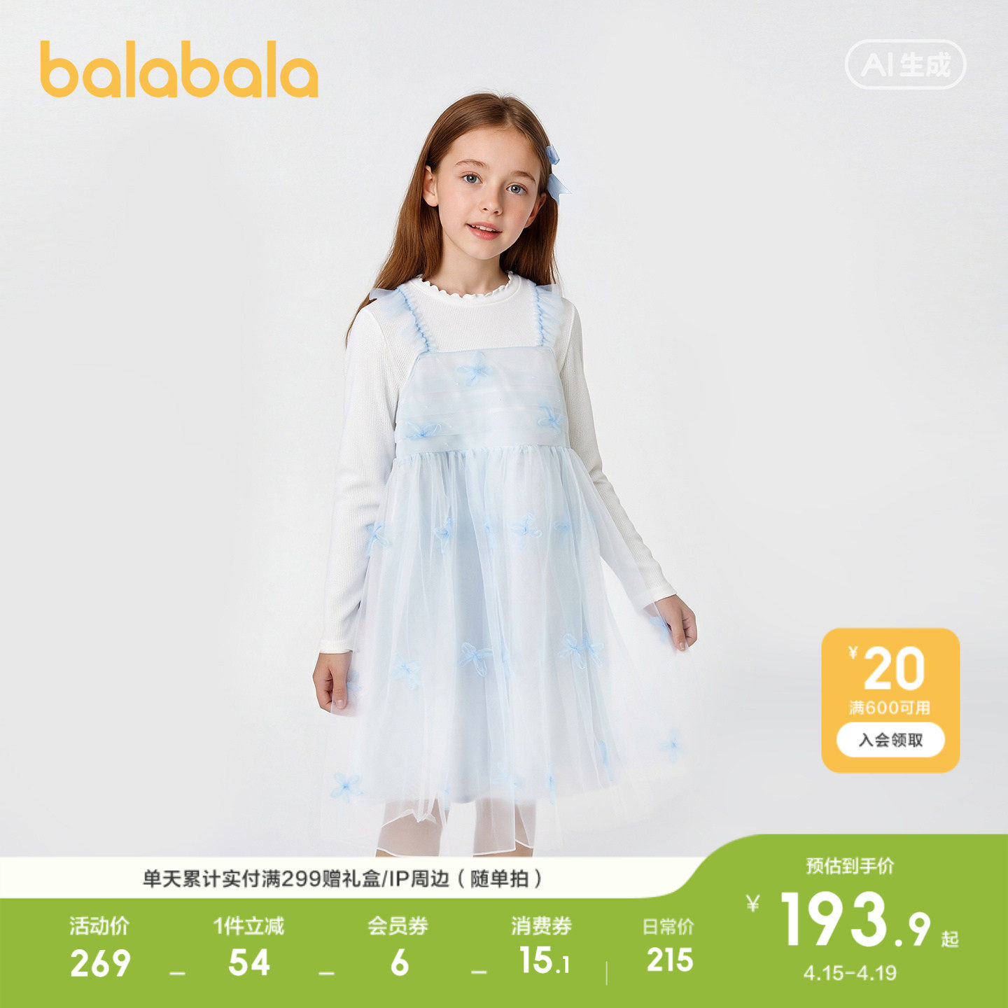 【balaOne】巴拉巴拉童装儿童连衣裙女童2026新款春装卫衣网纱裙