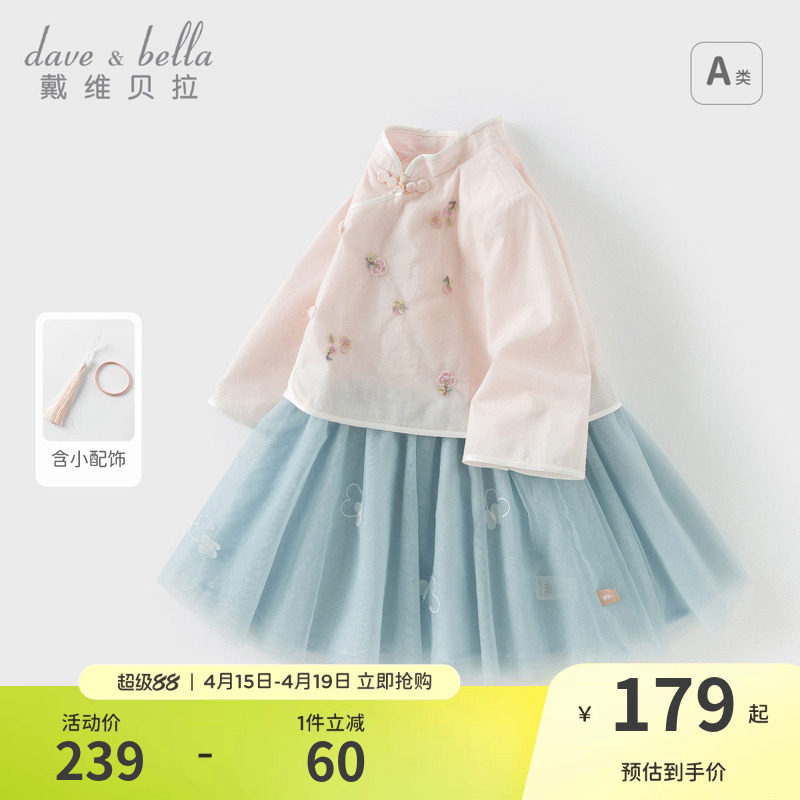 戴维贝拉儿童连衣裙2026春装新款女童国风汉服裙子宝宝网纱裙洋气