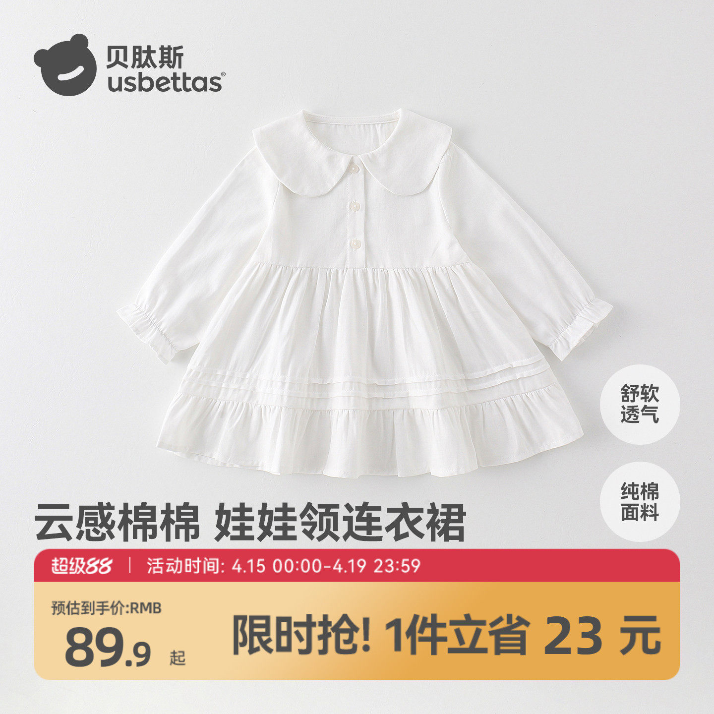 贝肽斯女童连衣裙春季新款纯棉女宝裙子女孩洋气宝宝春装白色裙S
