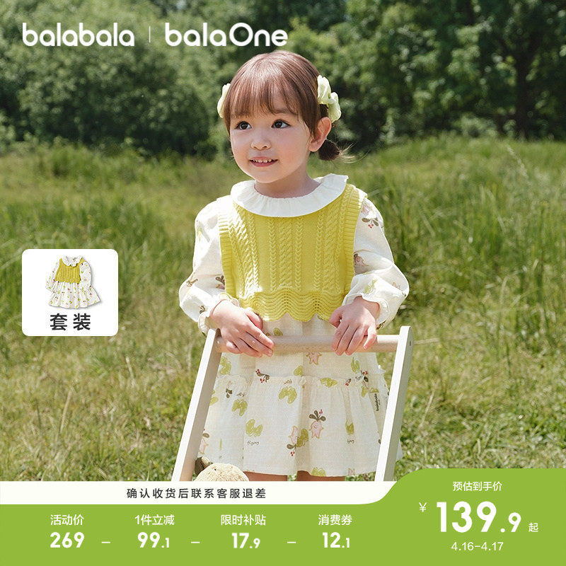 【balaOne】巴拉巴拉童装宝宝连衣裙2026新款春装一衣三穿甜美潮