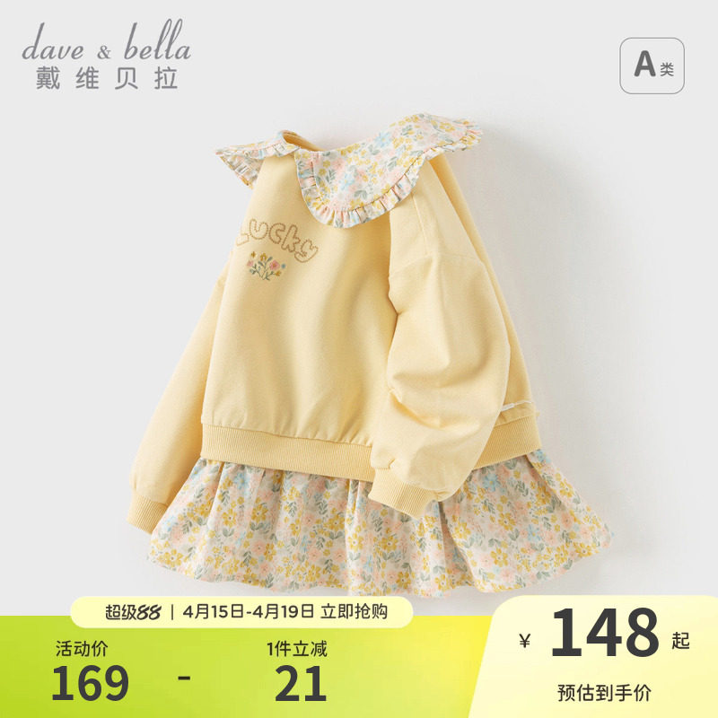 戴维贝拉女童连衣裙2026新款春装儿童长袖卫衣裙宝宝拼接裙子洋气