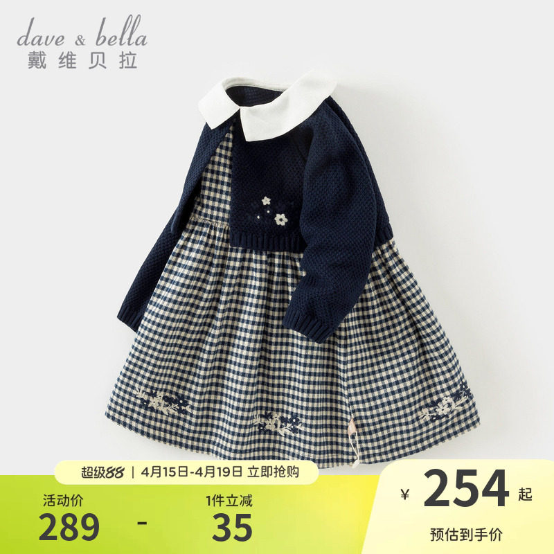 戴维贝拉儿童毛衣连衣裙2026春装女童假两件针织裙宝宝长袖厚裙子