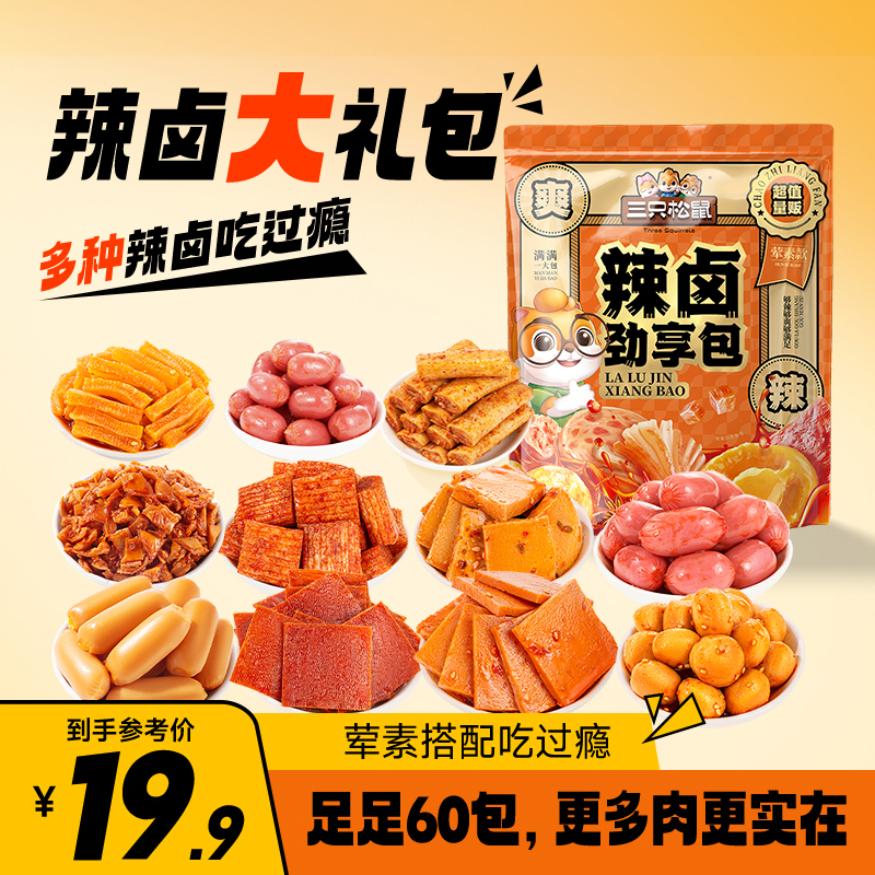 三只松鼠辣卤礼包_零食大礼包整箱卤味肉类休闲食品夜宵解饿小吃