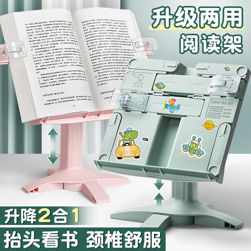 升降2合1阅读架看书架多功能可调节书架子桌上小学生用书夹书靠书立书本夹书器儿童放书翻书考研神器读书支架