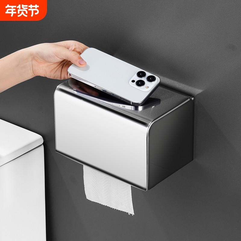 卫生间厕厕所纸盒304防水不锈钢纸巾盒手纸盒卷纸架抽纸筒免打孔