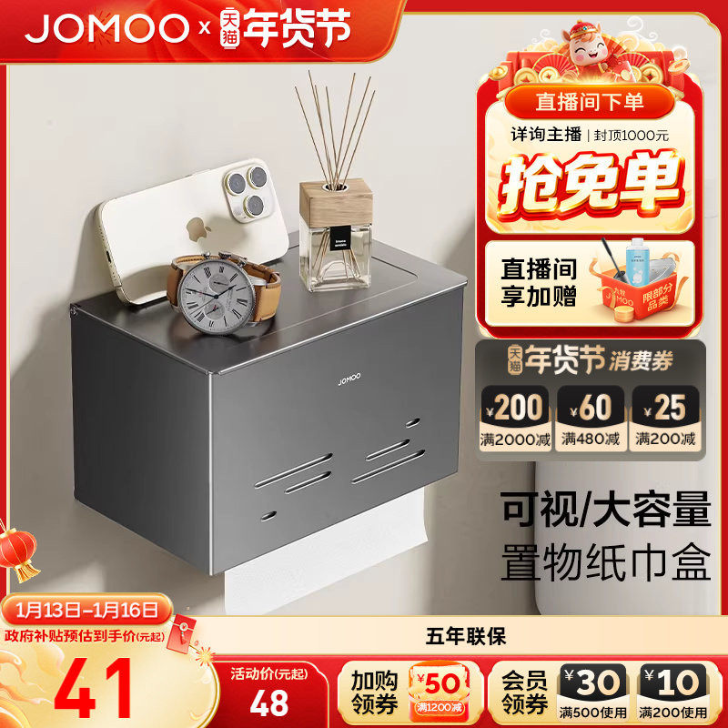 九牧官方旗舰店卫生间纸巾盒不锈钢厕纸盒铝合金卷纸盒厕纸架挂件