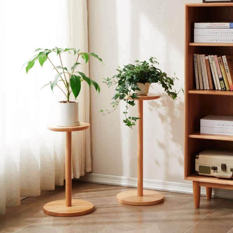 北欧简约花架榉木单盆置物架落地式花几创意绿植阳台客厅花盆架子
