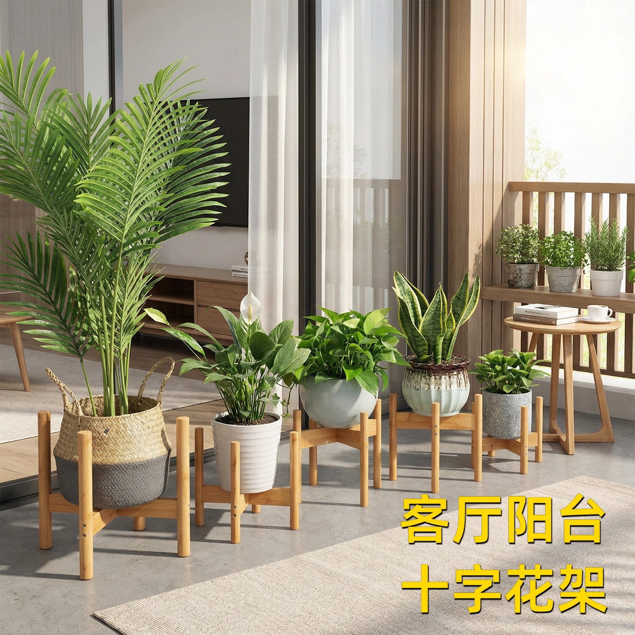 简约花架客厅阳台十字花架子绿植摆件支架竹木托架绿萝盆栽置物架
