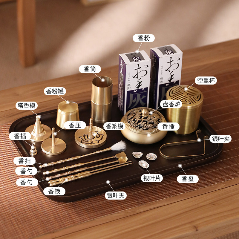 黄铜香道套装纂香篆檀沉香粉打篆工具入门用具熏香炉高级塔香用品