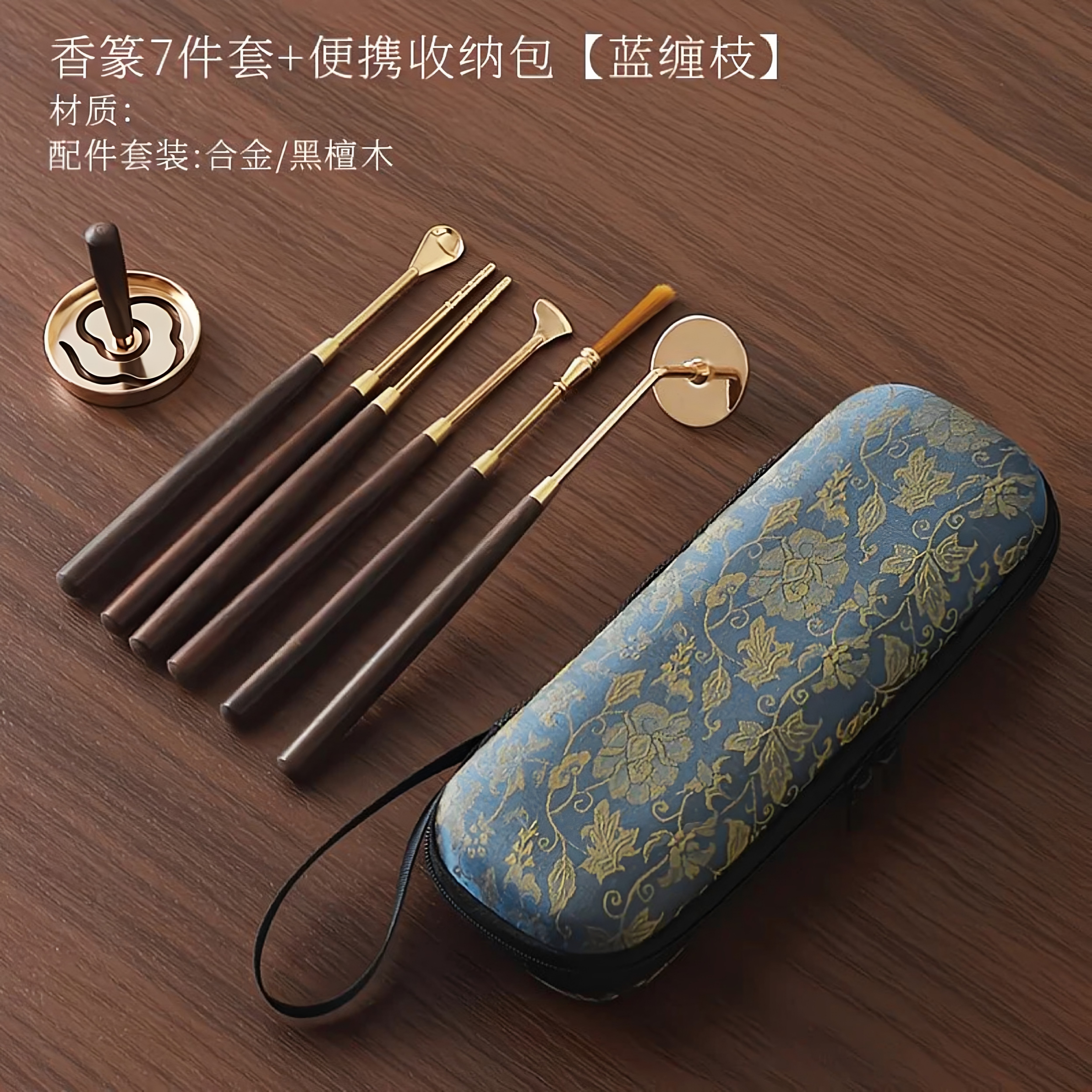 合金香篆香压打拓七件套香道配件便携收纳香扫香筷勺香模入门工具