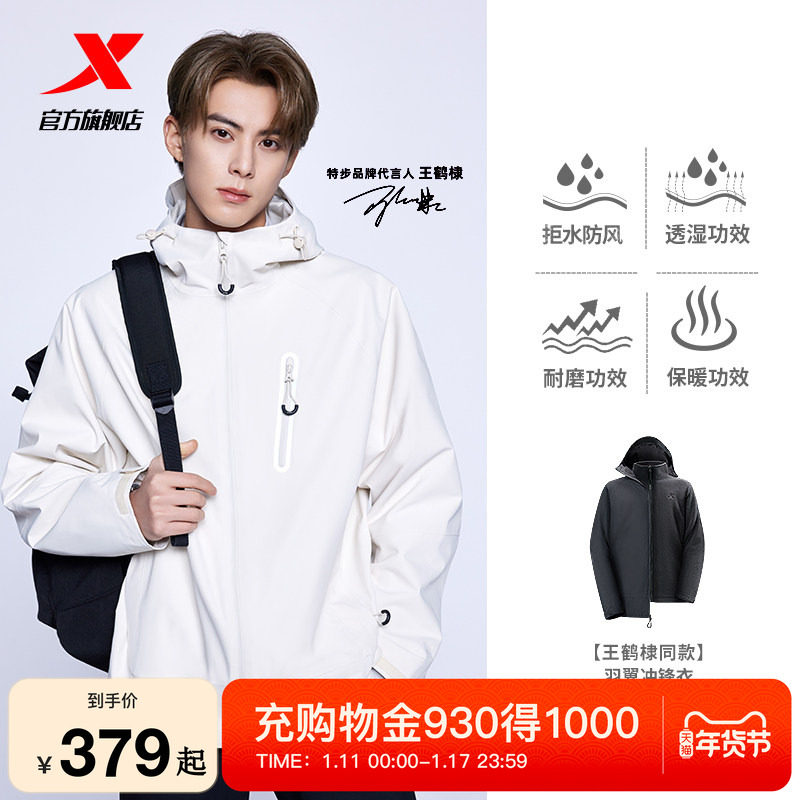 王鹤棣同款特步羽翼三合一冲锋衣男女同款春秋季新款户外情侣外套
