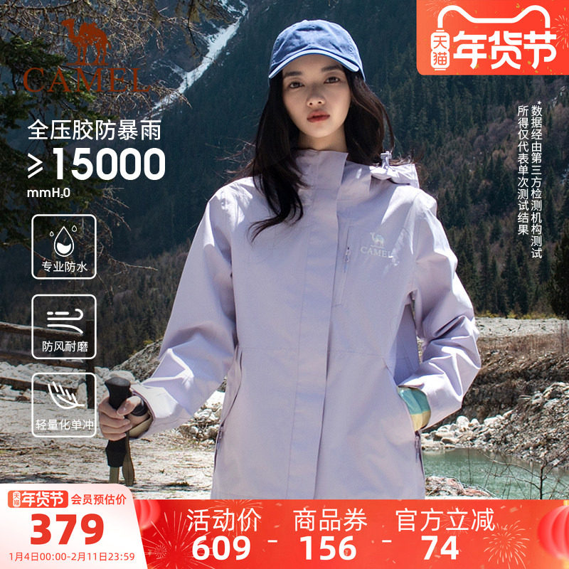 骆驼女装户外硬壳三防冲锋衣夹克男女秋季新款防水防风登山外套男