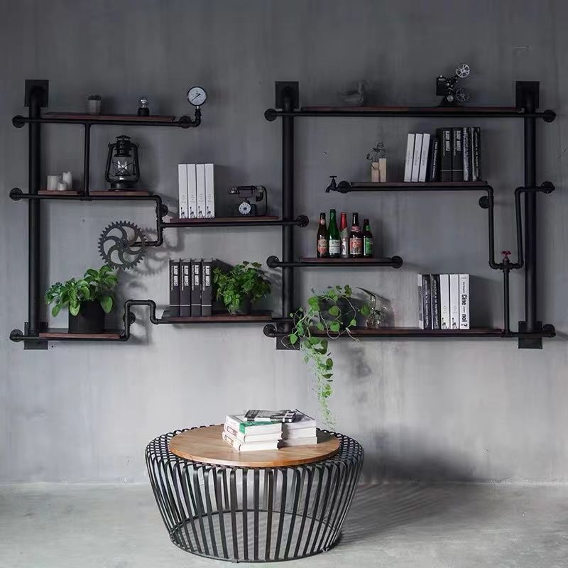 工业风铁艺水管墙上置物架书架复古壁挂酒架墙面创意展示架装饰架