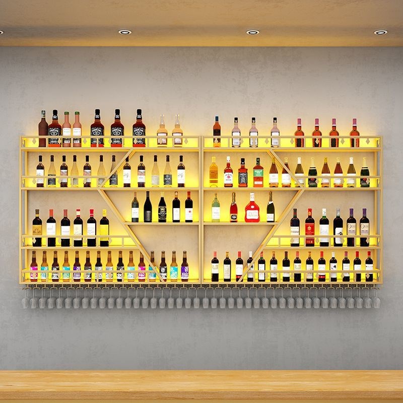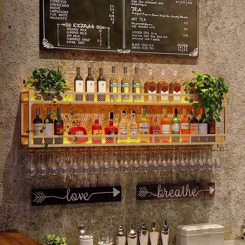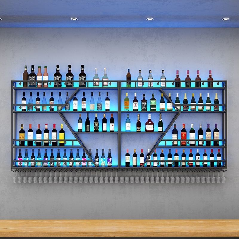 壁挂酒架酒行发光酒柜酒吧铁艺挂墙红酒架定制红酒杯架简约收纳架