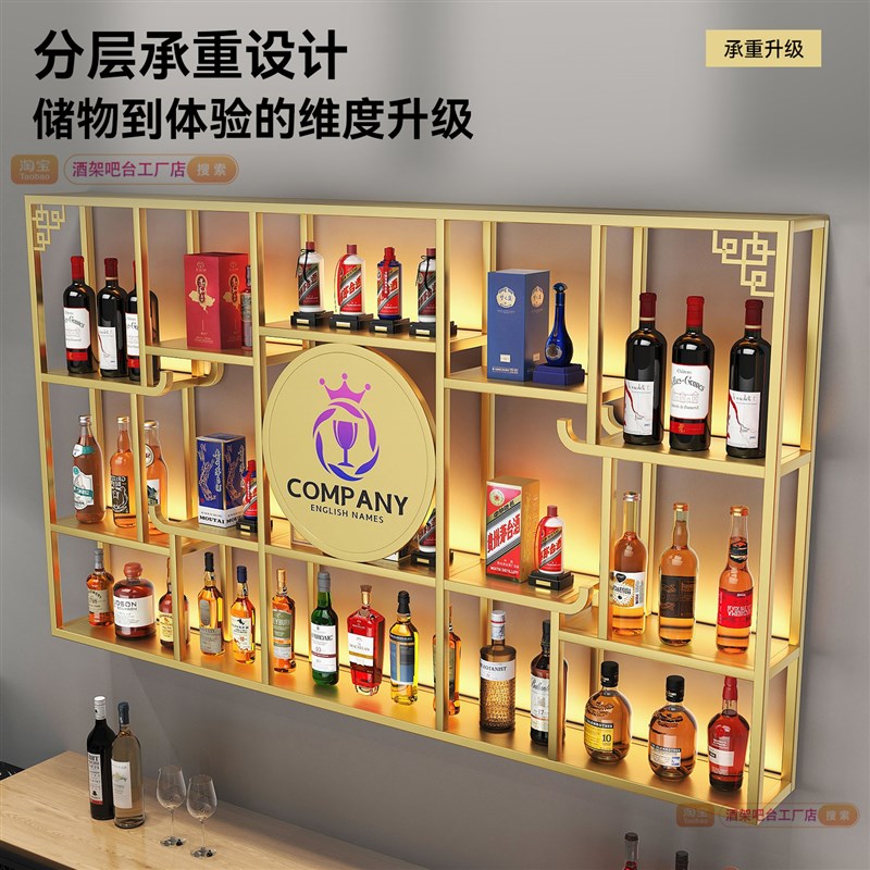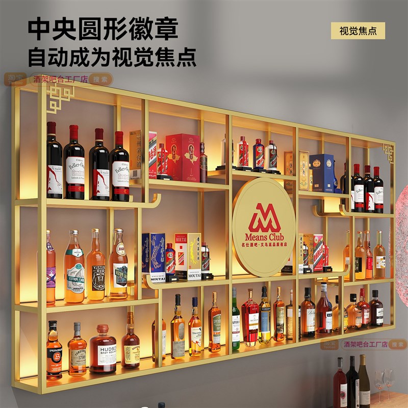 2025新中式壁挂酒架新款酒吧酒架吧台背景展示架商用红白啤酒酒柜