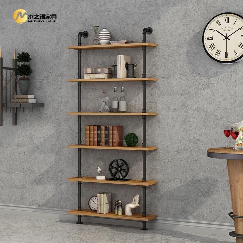 铁艺水管书架实木墙上置物架工业风一字隔板壁挂酒架落地墙面层架