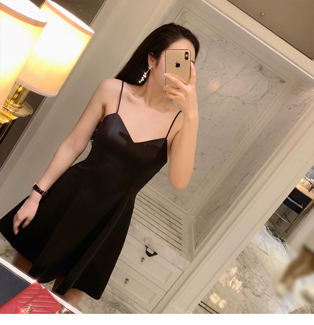 - 吊带丝绒裙