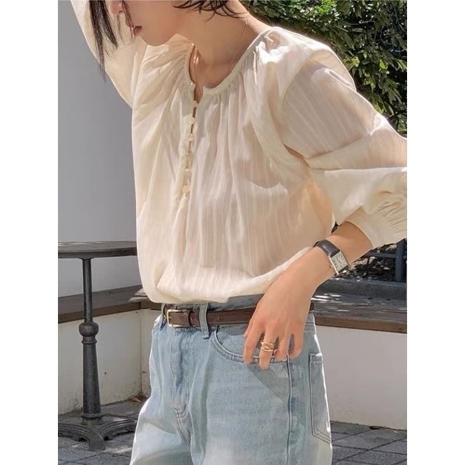 2025春季新款文艺全棉柔软亲肤元宝领减龄衬衣长袖百搭宽松衬衫女