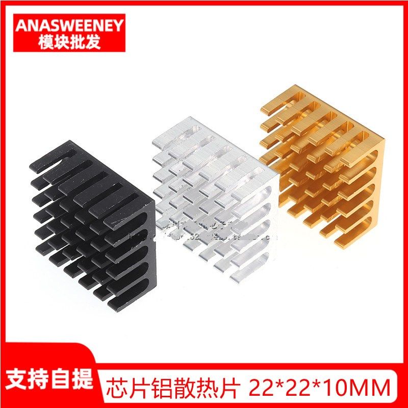 铝散热片 22*22*10MM 芯片散热器 路由CPU电子散热块 银/黑/金色
