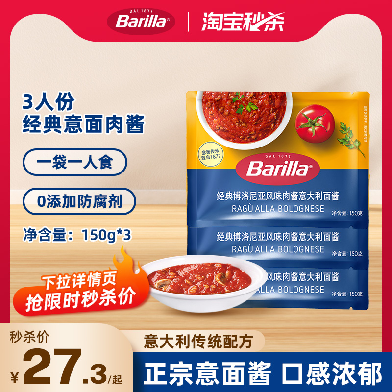 【详情页抢限时补贴】Barilla百味来意大利博洛尼亚意面酱三人份