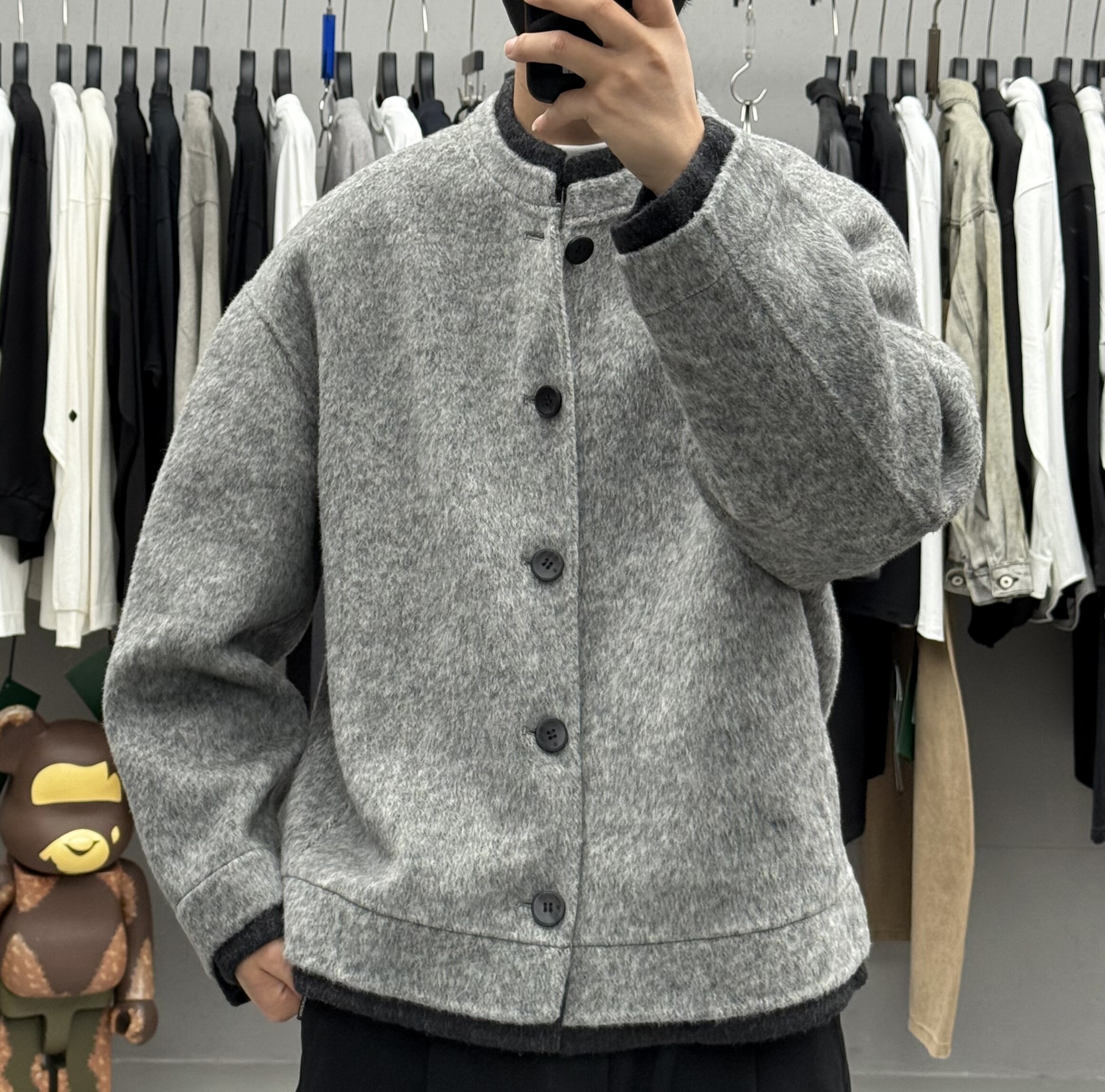 潮牌高端全纯羊毛呢大衣男士双面绒夹克冬季立领休闲加厚呢子外套
