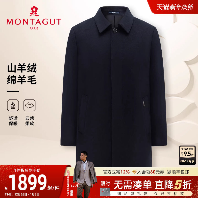 [30%羊绒]梦特娇男士羊绒羊毛呢大衣冬装商务中长款行政外套保暖J