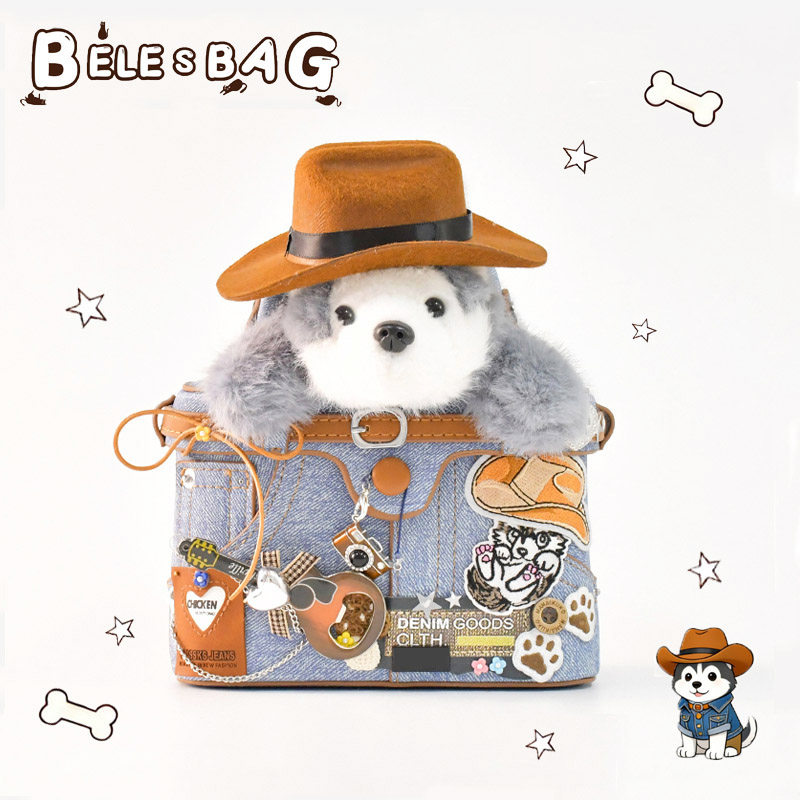 BELE卡通牛仔包包可爱女生相机包收纳单肩斜挎包新年生日礼物学生