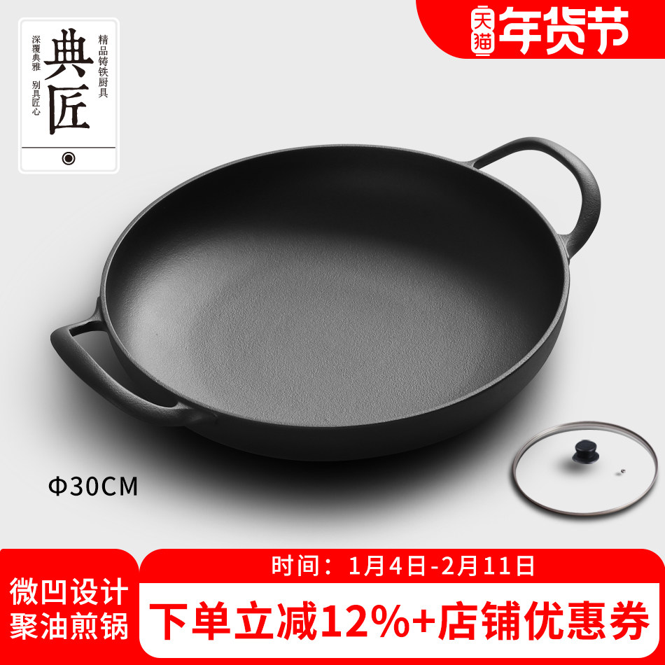 典匠铸铁煎锅平底锅生铁无涂层牛排锅家用微凹加厚煎蛋烙饼锅30cm