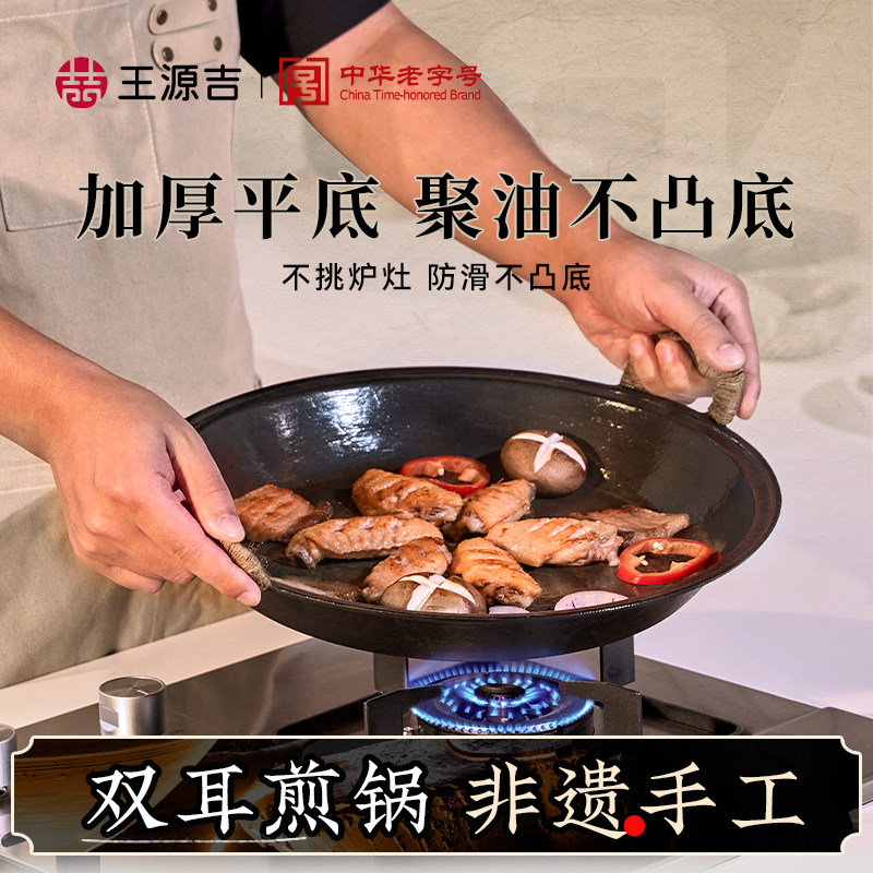 王源吉不粘锅无涂层平底铸铁煎锅煎蛋牛排烙饼锅家用煤气灶电磁炉