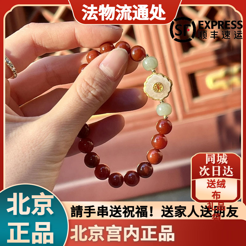 北京法物流通处正品南红玛瑙手串吞金兽手链送母亲节女友生日礼物