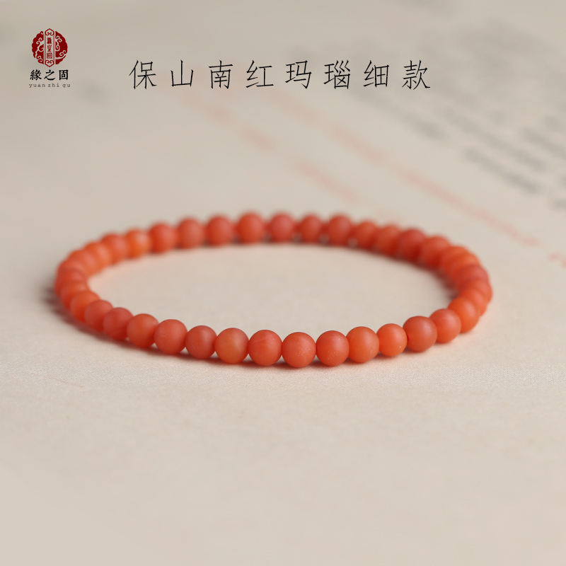 缘之固保山南红玛瑙手串女磨砂面亚光民族风古风国风佛珠单圈手链