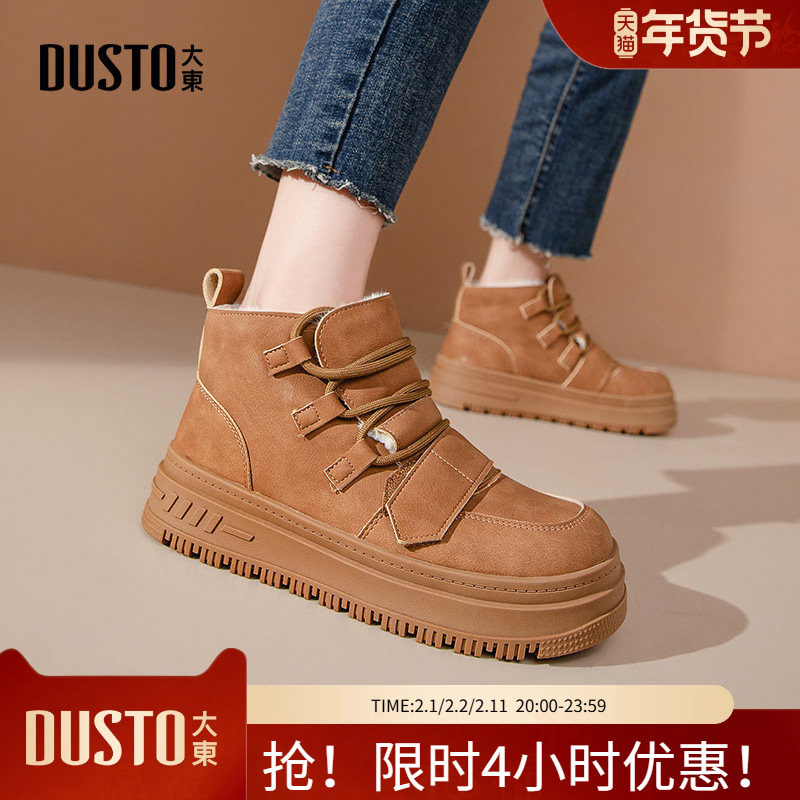 大东女鞋短靴2025冬季新款平底雪地靴复古棉鞋加绒勃肯鞋圆头女靴