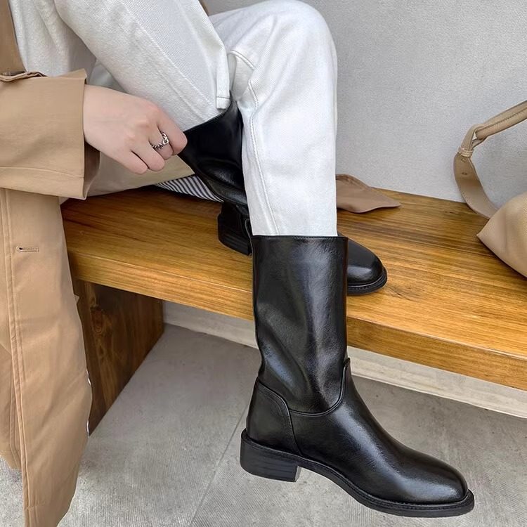 大东女靴长靴2025冬季新款通勤平底骑士靴圆头单里百搭职业高筒靴